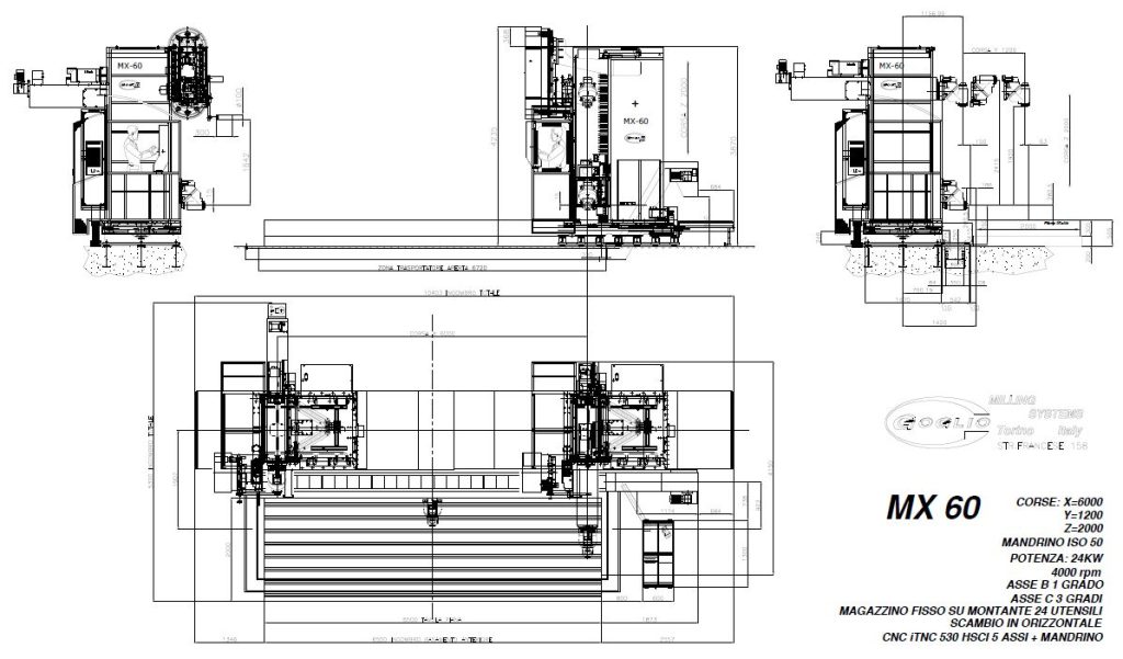Testa automatica 3500rpm – 24kw, Corona posteriore 1° x 1°, Davanti 3° x 3°